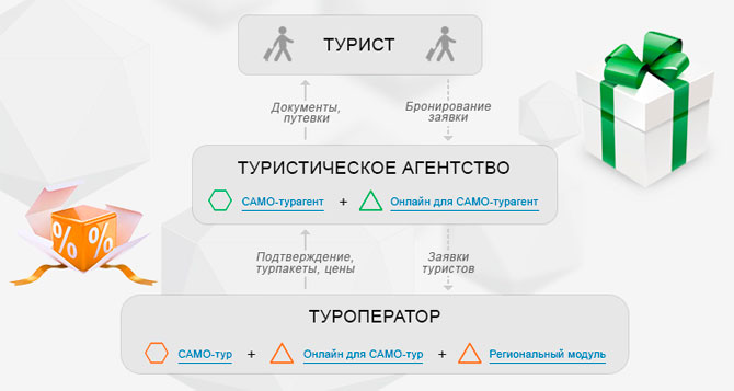 Еще одна полезная опция — модуль, размещаемый на сайте агентства, который позволяет туристам самостоятельно искать и бронировать туры не покидая сайта вашей компании, их заявки будут автоматически сохраняться в «САМО-турагенте». Менеджерам останется только подтвердить получение, а туристу в личном кабинете оплатить тур и распечатать полный комплект документов.