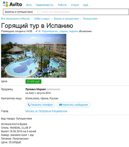 Пример рекламы на туристическом портале «Тонкости туризма»