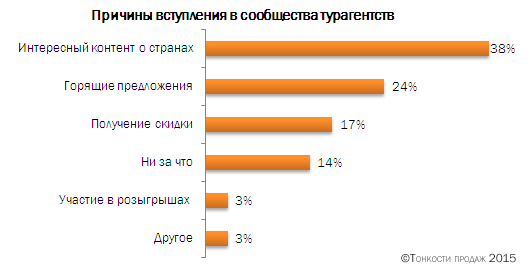 На первый взгляд это довольно просто: завел себе сообщество и время от времени оставляешь в нем объявления о горящих турах. Но на самом деле ведение сообщества и продвижение в социальных сетях — не такое простое занятие. О том, как туристическому агентству правильно начать свою работу в соцсетях и какие могут быть подводные камни, мы писали у одной из прошлых статей. А вот о том, что именно писать, чтобы привлечь потенциального туриста в сообщество турфирмы, мы спросили прямо у самих туристов. Итоги этого опроса опровергли все догадки: оказывается, туристы вступают в сообщество турагентства вовсе не ради скидок или информации о горячих предложениях. В первую очередь их интересует полезная информация о дальних странах.